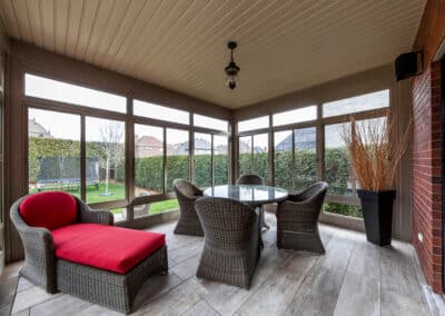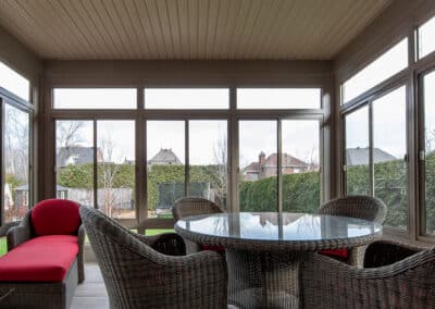 The client wanted to replace their existing veranda. We suggested single glass windows with a glass muret to maximize the outdoor view.
