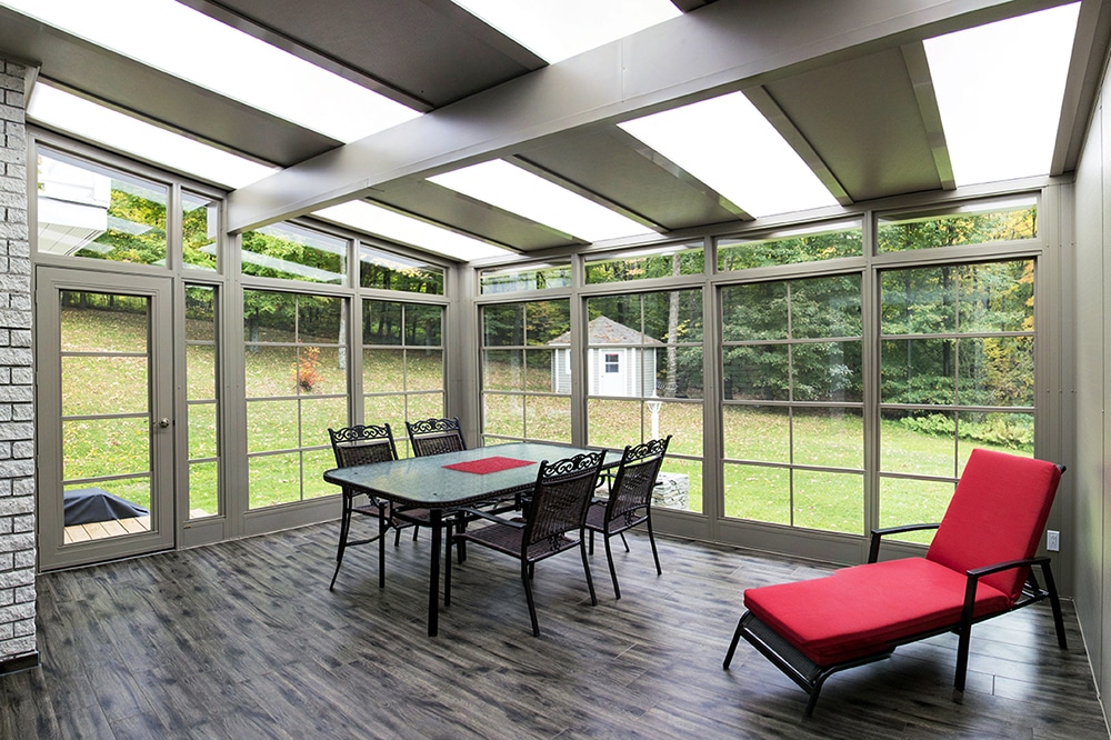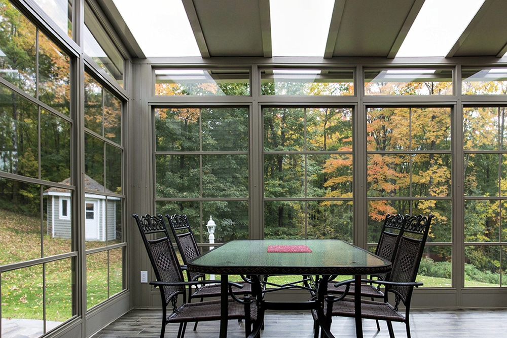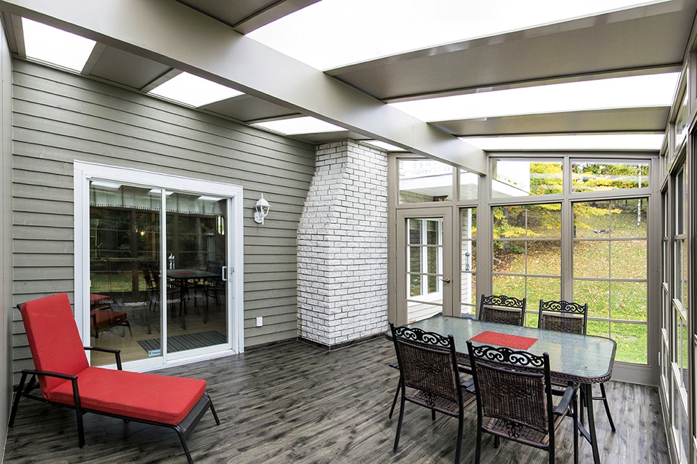 - 3-season solarium with vinyl windows, double-hung style