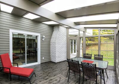 In this case, we installed a 3-season solarium with vinyl windows on a semi-detached home in Sutton. To maintain privacy, we created a solid wall on the shared side and installed windows on all other sides.
