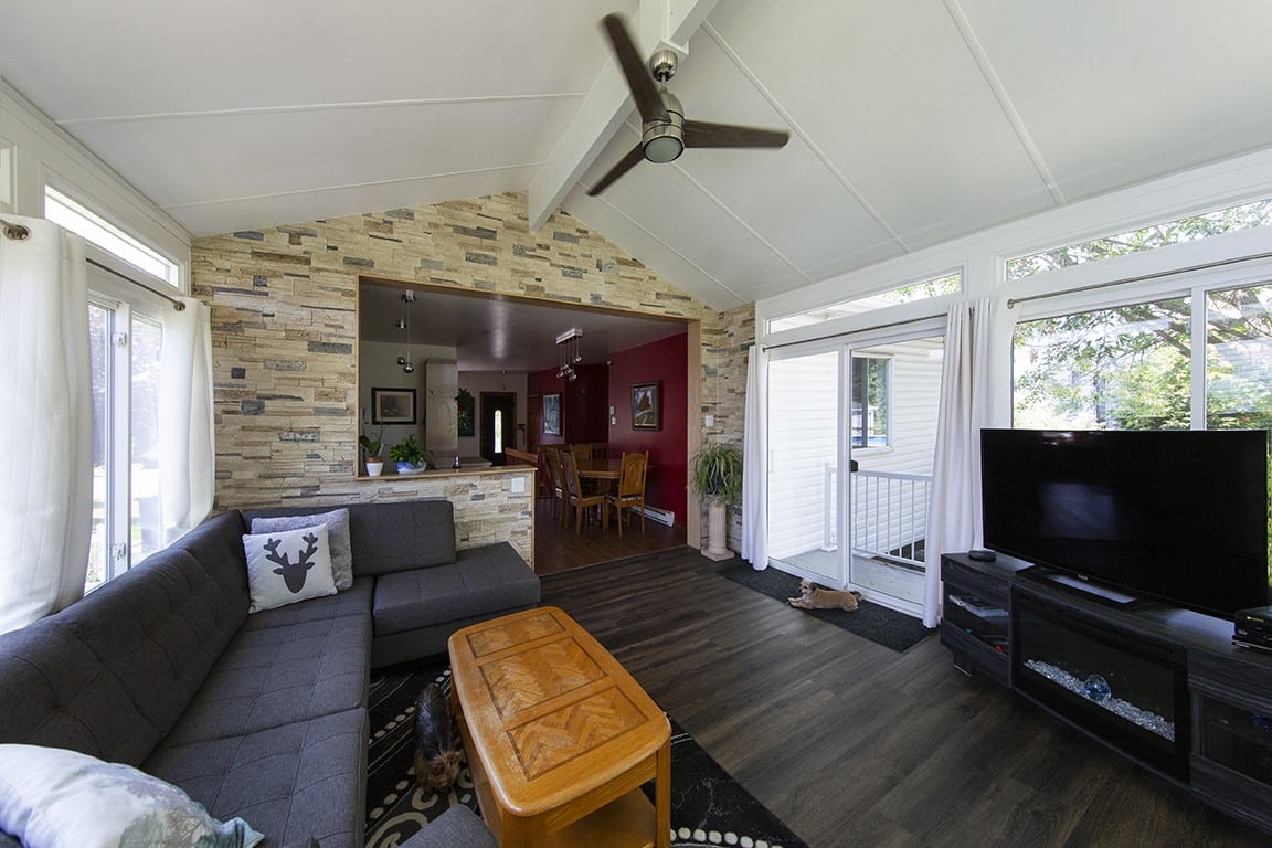 We opened up the wall of the house to create an open-concept flow with the rest of the home. We removed the patio door leading into the dining room, as well as the window that opened into the kitchen.