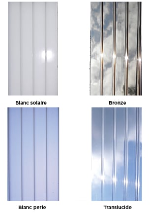 Le produit est offert en plusieurs teintes qui laisseront plus ou moins passer les rayons du soleil, selon le modèle choisi. Quel que soit le modèle, ils bloquent tous les rayons ultra-violets.